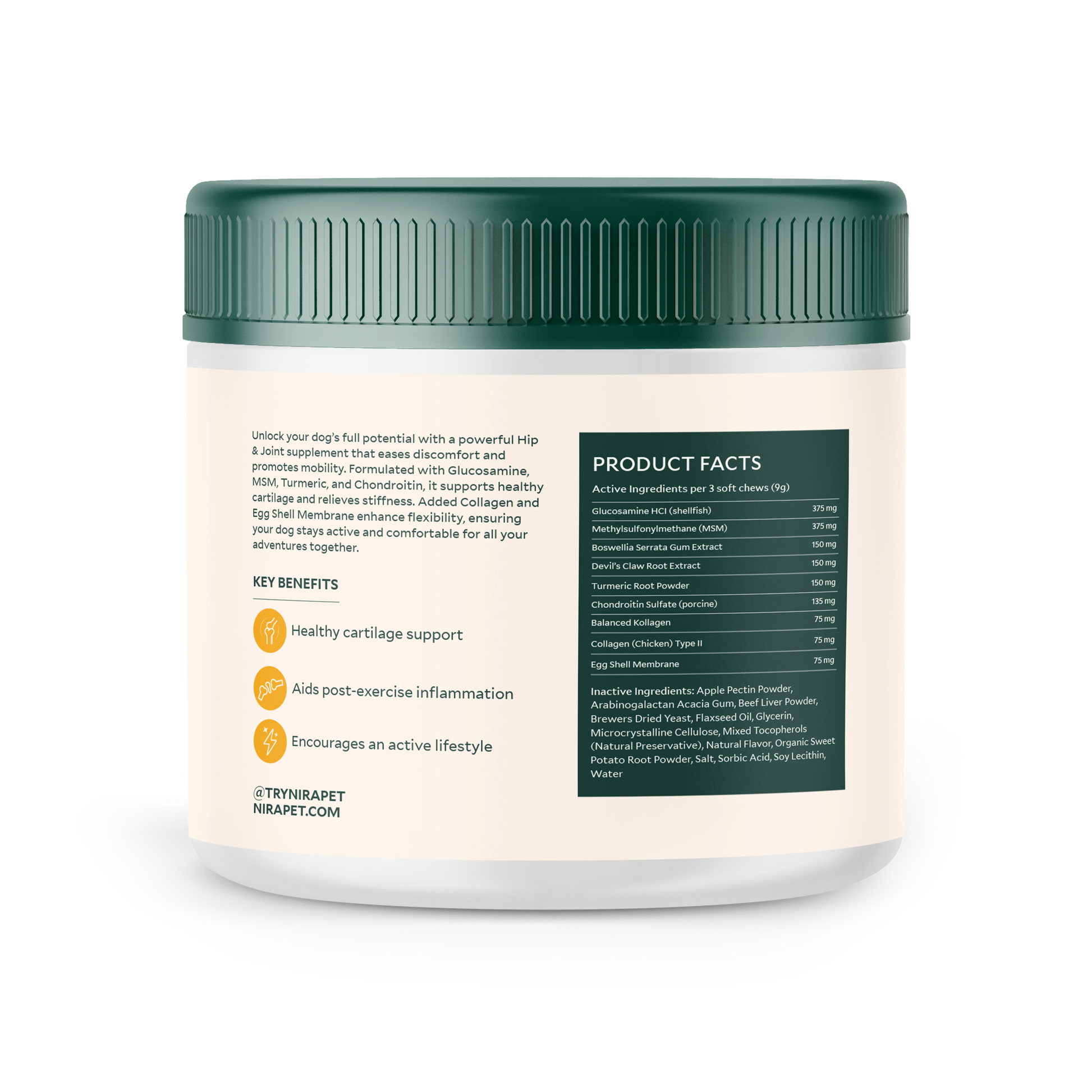 Formulated to reduce stiffness and inflammation—ideal for aging dogs or active breeds.